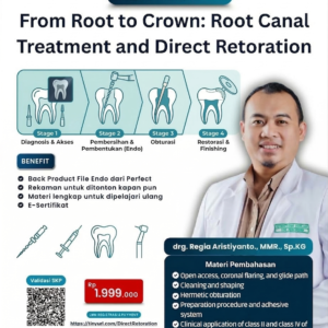 Workshop Nasional “Direct Anterior Restoration Teeth Workflow: From Preparation to Polishing” merupakan pelatihan praktis yang berfokus pada prosedur restorasi gigi anterior secara langsung, mulai dari tahap persiapan hingga tahap pemolesan akhir. Kegiatan ini dirancang untuk memberikan pemahaman menyeluruh mengenai teknik restorasi estetika gigi depan dengan hasil yang presisi, fungsional, dan natural.