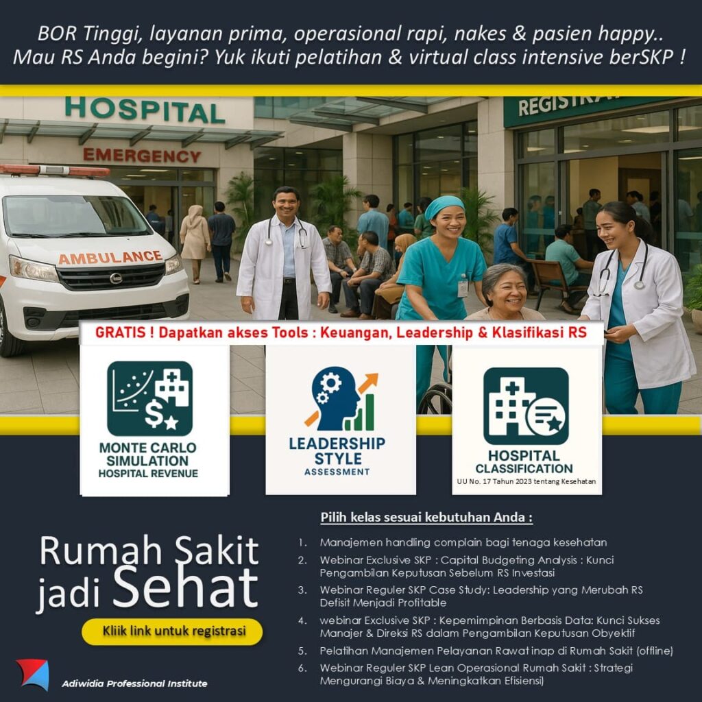 Kurikulum lengkap dan aplikatif dari para praktisi terbaik, dirancang untuk membantu rumah sakit Anda menjadi lebih efisien, unggul dalam pelayanan dan berdaya saing tinggi.